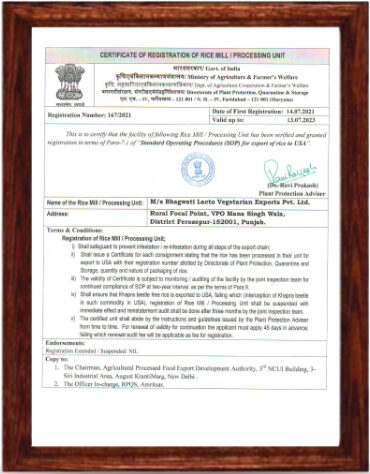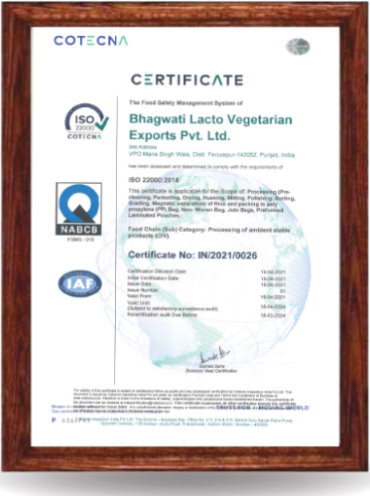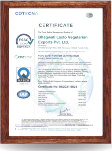 BLV Exports has earned as enviable reputation in Rice industry. We are a professionally managed company, renowned for our commitment and focus to deliver the best always. Our ontology of offering our customers the best has prompted us to get all the certificates of food quality systems that are a benchmark in the international food industry.