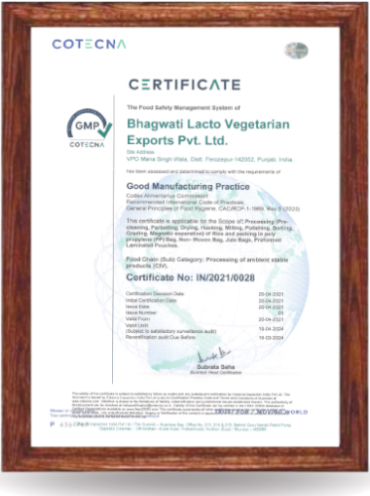 BLV Exports has earned as enviable reputation in Rice industry. We are a professionally managed company, renowned for our commitment and focus to deliver the best always. Our ontology of offering our customers the best has prompted us to get all the certificates of food quality systems that are a benchmark in the international food industry.
